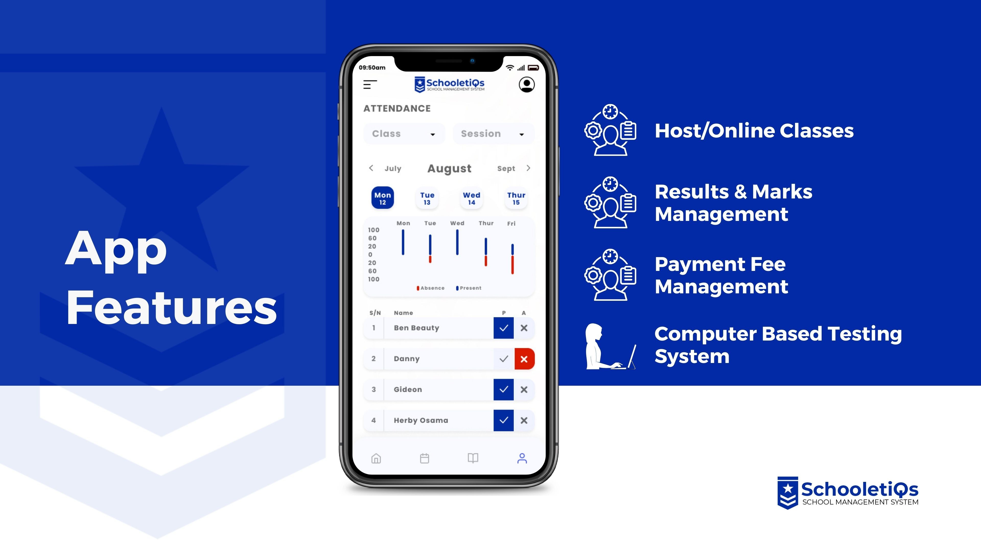 SchooletiQs has truly revolutionized our school management experience! Gideon's design prowess shines through every aspect of this app. The interface is not just user-friendly; it's a joy to navigate. From attendance tracking to grade management, SchooletiQs simplifies tasks that used to be time-consuming. The thoughtful design reflects Gideon's commitment to understanding the needs of educators, administrators, and parents alike. The app seamlessly integrates into our daily operations, providing a streamlined and efficient solution. Gideon's dedication to creating an intuitive and visually pleasing platform has made SchooletiQs an invaluable asset to our institution. We are grateful for the innovative design and functionality that has elevated our school management to new heights!